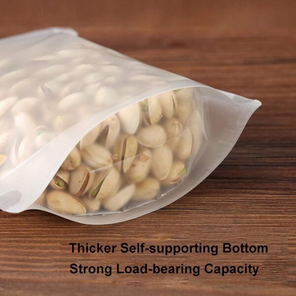 Perfect for storing coffee, tea, cookies, nuts, dried fruit, herbs, spices, candy, or even cosmetics and jewelry, these versatile pouches are resealable and reusable. Their sleek matte frosted finish offers a clean, professional look that highlights your products.