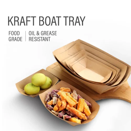 Food Grade Eco-Friendly Kraft Paper Tray Boat Plates