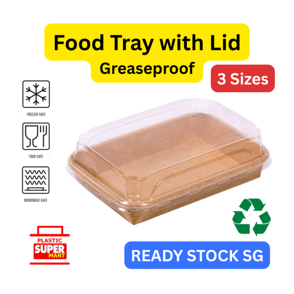 Serve and present with style using our eco-friendly kraft paper food trays with clear PET lids. Perfect for salads, croissants, pastries, bread, cheese, fruits, burgers, sandwiches, sushi, and more, these trays combine functionality with elegant presentation.