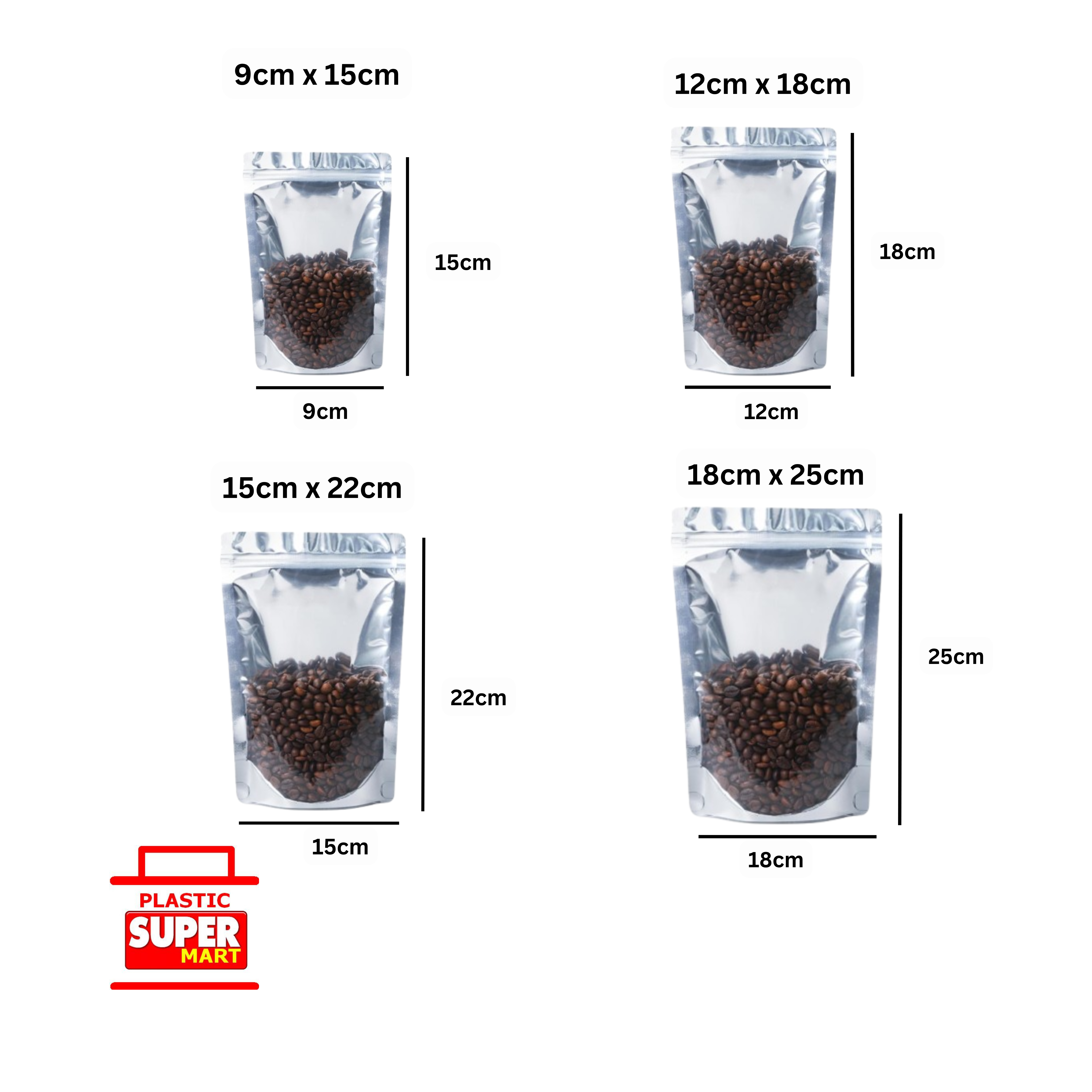 Sliver Foil Full View Stand Up Food Pouch with Zipper